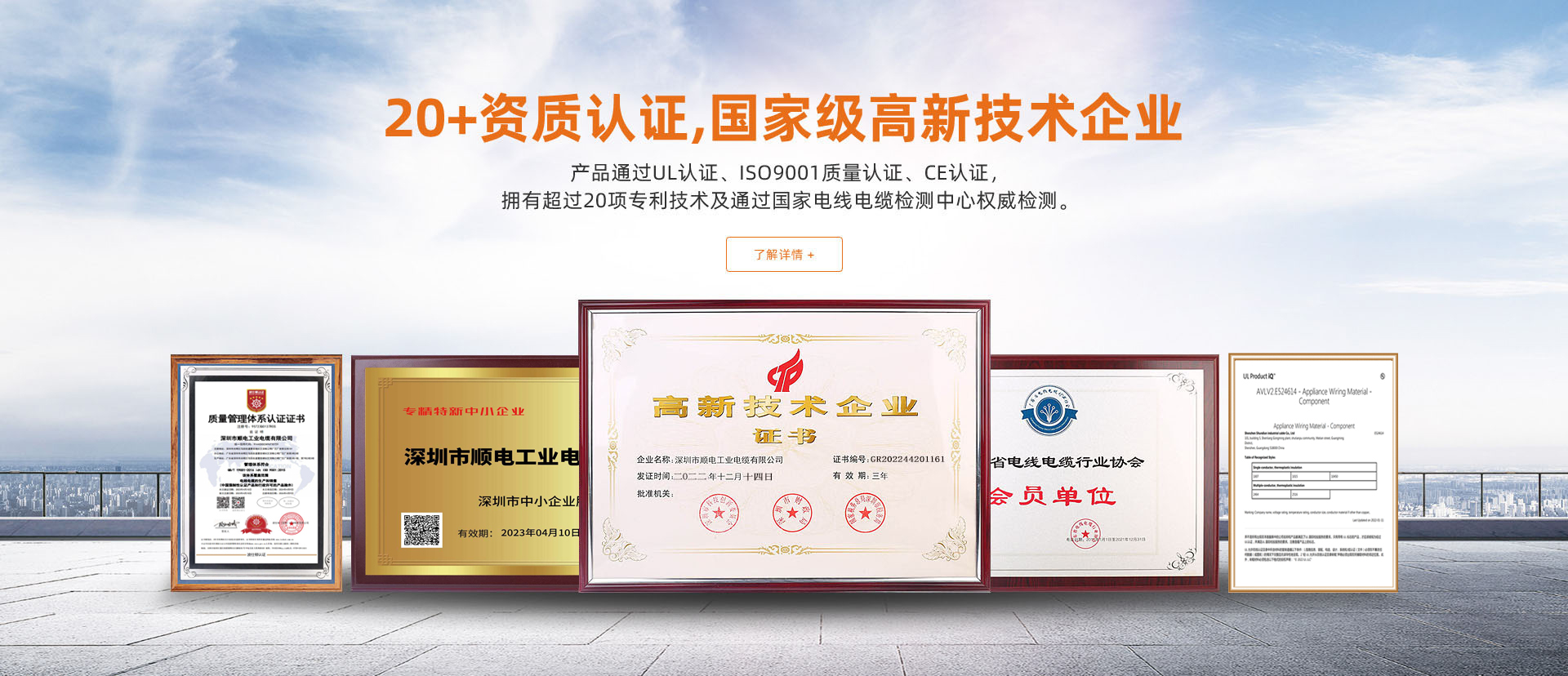 資質(zhì)認(rèn)證齊全,國(guó)家高新技術(shù)企業(yè),15項(xiàng)專利技術(shù)產(chǎn)品通過UL認(rèn)證、ISO9001質(zhì)量認(rèn)證、CE認(rèn)證,擁有超過十五項(xiàng)專利技術(shù)及通過國(guó)家電線電纜檢測(cè)中心權(quán)威檢測(cè)。